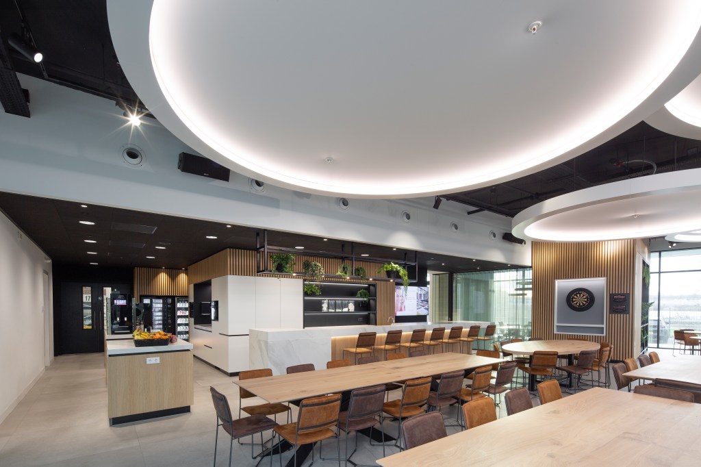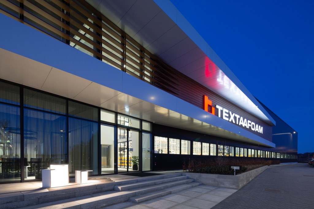 In samenwerking met Quadrant4 hebben wij gebouwconcept en de inrichting mogen verzorgen voor Textaafoam te Tilburg. Het interieurconcept is aanleiding geweest voor de architectuur die verder is vormgegeven in samenwerking met Heembouw. Opdrachtgevers wensten een duurzaam , tijdloos kantoor waar met name de werknemer centraal staat. Het nieuwe experience centrum is ook door ons vormgegeven. Hier kunnen de klanten van Textaafoam in ale rust ,met uitzicht op de natuur, de nieuwe collecties samenstellen. Het centrale hart van het bedrijf is de kantine. Hier komen alle medewerkers samen voor de lunch de vrijdag middag “borrel” ,een potje darten of gamen…….