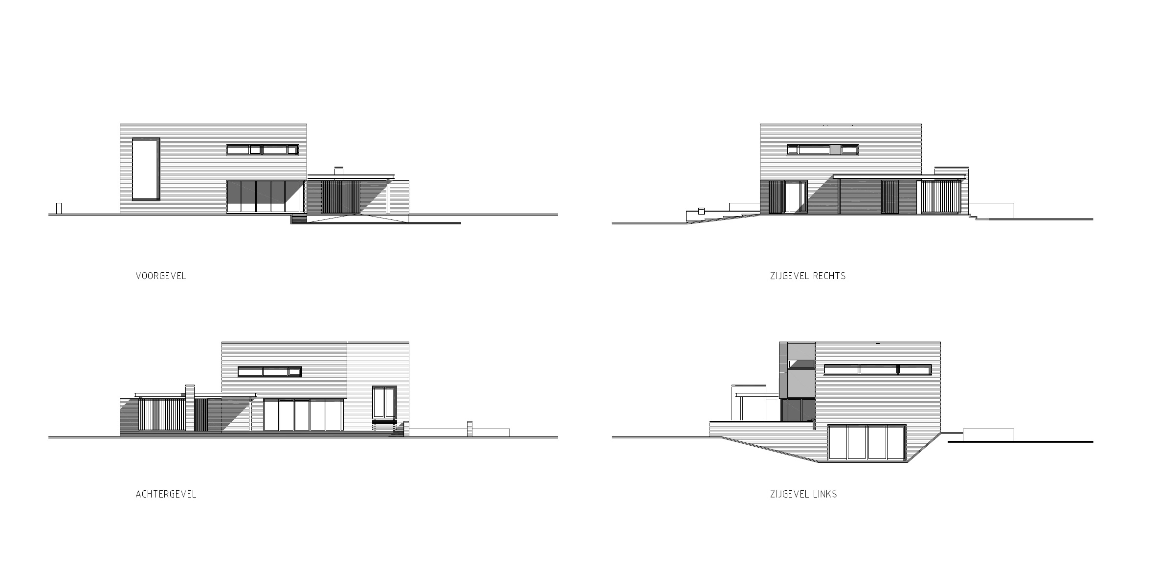 Opdrachtgevers wensten voor het gezin op deze locatie een ruime woning met atelierruimte te realiseren. Daarnaast wenste men een grote leef keuken als centraal punt. Via de entree, met zicht op de verhoogde woonkamer, komt men dan ook direct in de keuken. Deze “doorzon keuken” is vervolgens centraal gesitueerd als spil rond de trappen en als verbinding tussen de voor en de achterzijde van de woning. Het atelier bevindt zich “splitlevel” in de grond en heeft een eigen, verdiept, terras. Via een open trap welke is omsloten door een vide komt men in de verhoogde woonkamer.